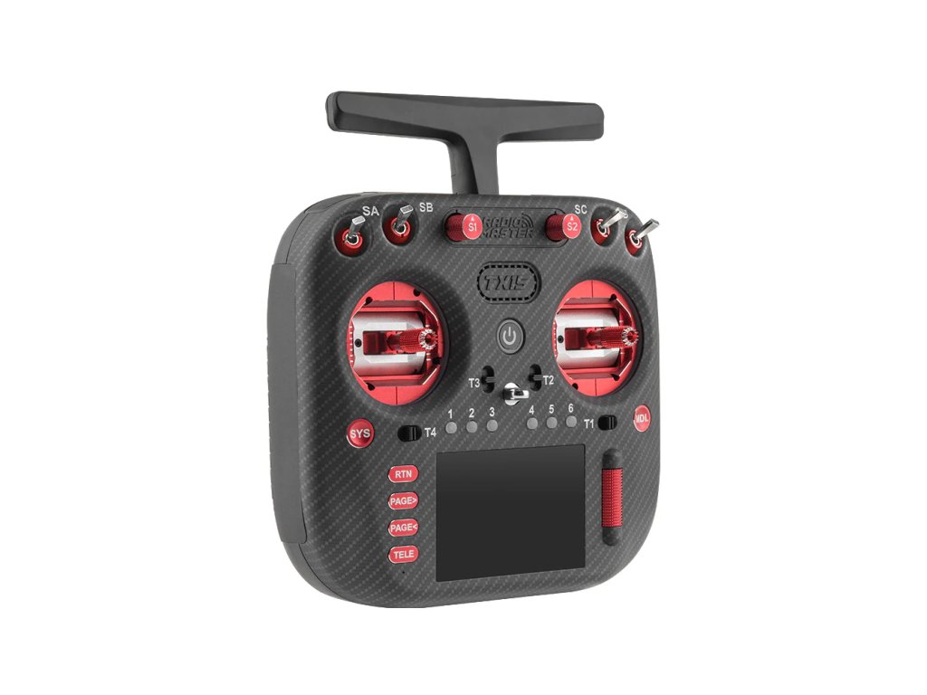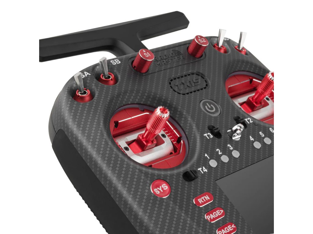TX15 MAX je vybaven CNC gimbaly AG02 s hall senzory, které nabízejí přesný a hladký chod a možnost nastavení rozsahu. Prémiový vzhled podtrhuje kovové provedení ovládacích prvků, karbonová povrchová úprava a integrované RGB LED kroužky kolem gimbalů s možností nastavení pomocí LUA skriptů. Displej o velikosti 3.5" s IPS technologií zaručuje jasné zobrazení i na přímém slunci.